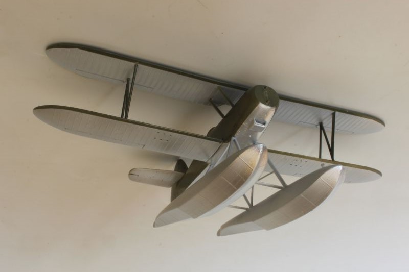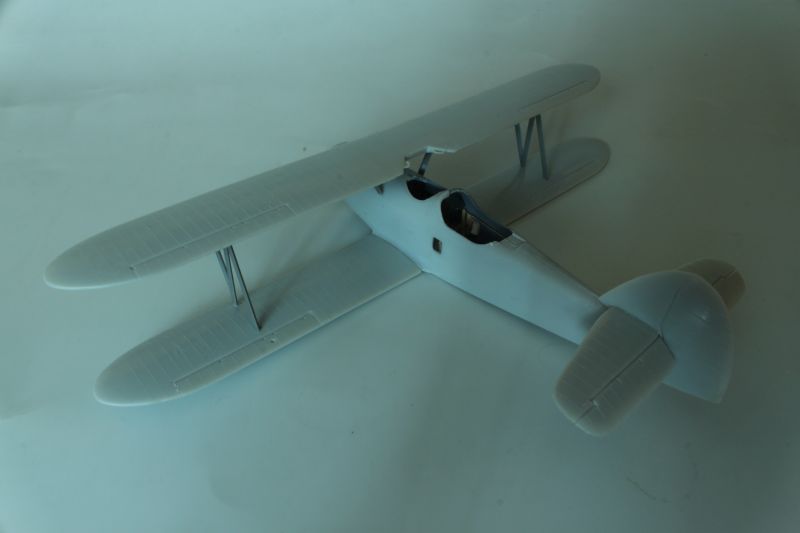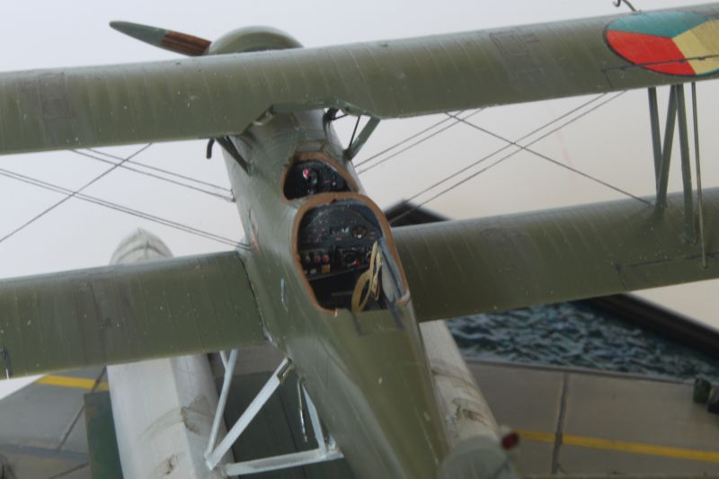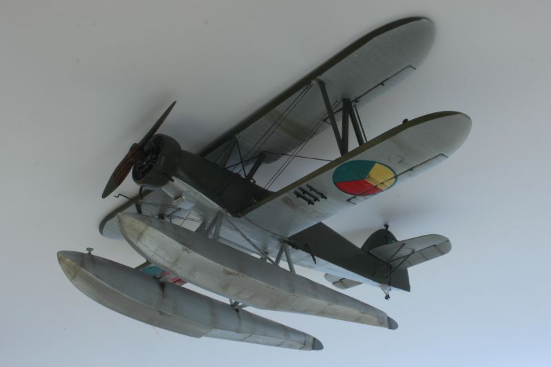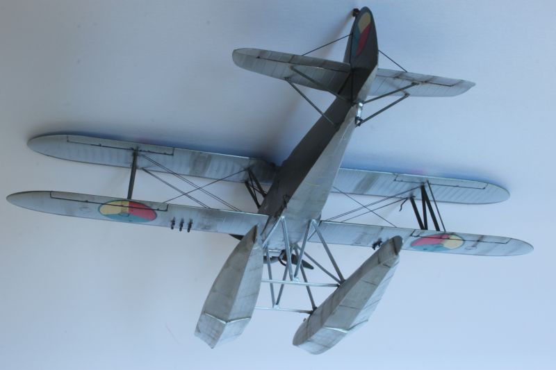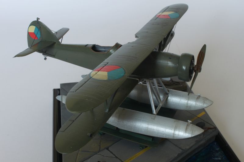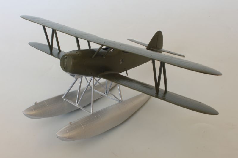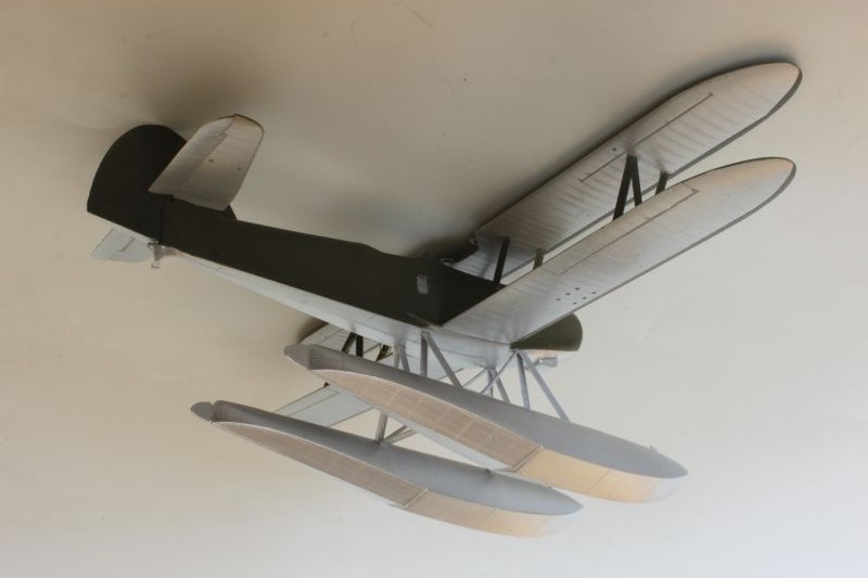 Model z uwagi na dwukolorowy kamuflaż musiałem malować w kawałkach i sklejać w całość dopiero po zakończeniu malowania. Na początek maskowanie kokpitu i podkład w sparyu. Potem model został pomalowany, użyłem farb BilomodelMaker: polischd alluminium - dół kadłuba i pływaki, white alluminium - dolne powierzchnie płatów oraz Polisch Khaki - cała reszta, ten kolor wydał mi się najodpowiedniejszy. Malowanie wraz z maskowaniem zajęło mi około półtorej godziny, nudne staje się pisanie o wysokiej jakości farb producenta z Gdyni. Po zakończeniu malowania, zdjąłem maski, poprawiłem malowanie w kilku miejscach i złożyłem go w całość.