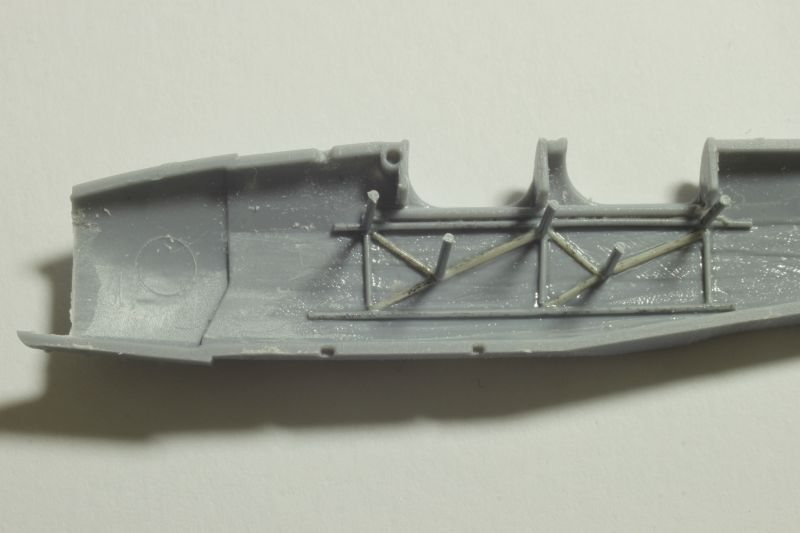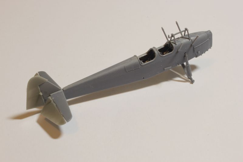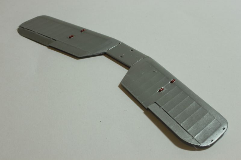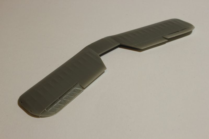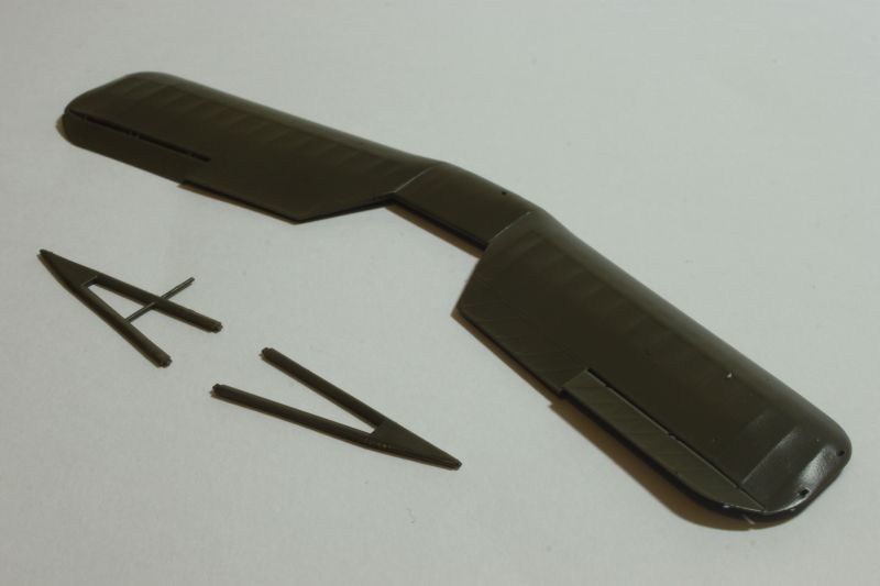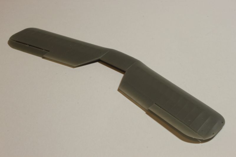 Po pomalowaniu (używałem do tego celu akryli Vallejo) i złożeniu w całość kokpitów upewniłem się czy nie rosną mi łuski na grzbiecie, zabrałem się montaż kadłubów i oczywiście wszystko przestało pasować „idealnie”, czyli zaczęło być tak, jak trzeba. Tak bywa jak się próbuje napchać za dużo do środka. Po obróbce miejsc łączenia przyszła pora na montaż usterzenia, goleni podwozia itp. Tu znowu nie napotkałem na żadne problemy. Imitację naciągów wsporników przy baldachimach odciąłem i postanowiłem zastąpić cieńszymi z polistyrenowych włosków. W pełni zrozumiała jest intencja producenta, taki sposób opracowania tych elementów ma ułatwić montaż mniej doświadczonym modelarzom. Bardzo słusznie. Kto chce niech przerabia po swojemu. Od siebie dodałem ponadto kilka uchwytów oraz lusterko na prawym tylnym wsporniku. Kolejnym antidotum, które miało mnie ochronić przed wszechobecnym złem emanującym z obu zestawów były żywiczne płaty firmy Arma Hobby wypuszczone na rynek pod marką Attack Squadron. To doskonałe produkty i ich zastosowanie na pewno wpłynie korzystnie na ostateczny wygląd budowanej repliki. Mamy również do dyspozycji komplet powierzchni sterowych a także dwa rodzaje centropłata. Ja jednak nie zdecydowałem na krojenie płata, nie miałem informacji czy akurat te konkretne egzemplarze samolotów, których modele budowałem miały właśnie ten typ centropłata.