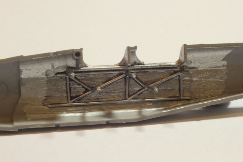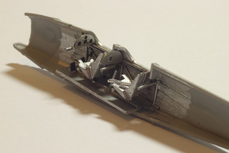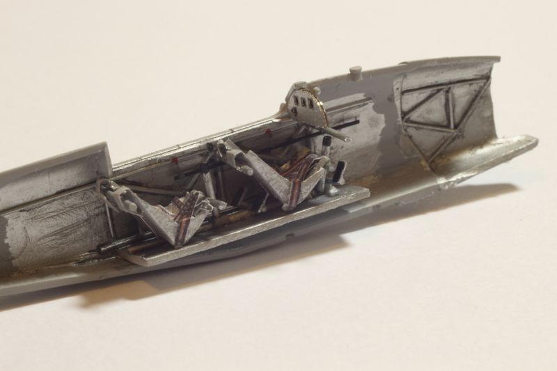 Przełknąłem jakoś tę żabę i upewniwszy się, że między palcami nie wyrosły mi błony pławne zabrałem się za kokpit. Aby pomścić tę zniewagę postanowiłem wnętrze kabin w obu miniaturach wykonać po swojemu i dodatkowo dołożyć otwarty przedział silnika w PWS-ie. Usunąłem kratownicę z obu kadłubów i wyciąłem boczną osłonę silnika na prawej burcie PWS-a. Nowe kratownice w kokpitach oraz ramę silnika zmontowałem z polistyrenowych prętów. Podłogi to z kolei kawałek płytki. Umieściłem na nich imitację układu sterowania, natomiast fotele i pasy to efekt zabawy prostym programem graficznym, dostosowanych do moich mizernym umiejętności grafika komputerowego. Po wydrukowaniu i wycięciu fotele skleiłem wikolem i nasączyłem klejem cyjanoakrylowym. Spowodowało to, że zwykły papier do drukarki daje się obrabiać się jak polistyren, pozostając odpowiednio cienki. Czas na użycie pierwszego antidotum - tablic przyrządów z firmy YahuModel. To doskonałe produkty, które mocno ułatwiają życie modelarzowi. Wystarczy wkleić czasem gdzieś zagiąć i cała filozofia, a model nabiera życia. W przypadku DWL wkleiłem obie tablice, natomiast PWS otrzymał jedynie przednią, pojedyncze zegary postanowiłem wkleić po sklejeniu i pomalowaniu kadłuba.