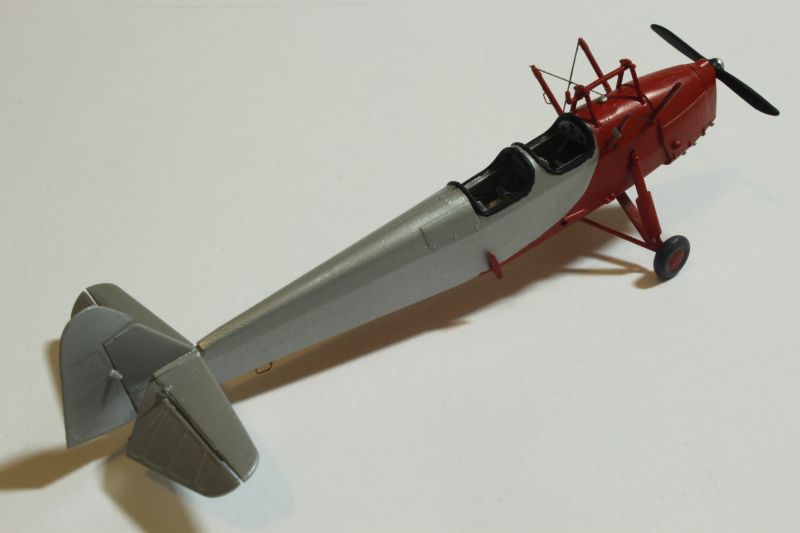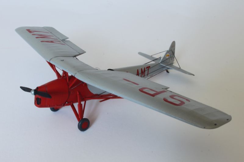Następnie wykonałem wszelkie poprawki malarskie oraz pomalowałem to, co miało być pomalowane inaczej, niż kolory podstawowe np. opony, okucia itp. Kolejnym etapem były kalkomanie. Wybrałem ostatecznie malowania pudełkowe. Początkowo trochę zżymałem się na rozbieżności pomiędzy pudełkiem a kartonikiem z kalkomaniami. Potem jednak stwierdziłem, że tak rzadko mam okazję budować model maszyny cywilnej, że postanowiłem PWS-a udekorować tym co przewidział producent. Kartonik kalkomanii do DWL-a nie zawiera co prawda numeru startowego „6” widniejącego na pudełku, ale nie jest to błąd, znane są bowiem zdjęcia tej maszyny zarówno z numerem jak i bez niego. Ja wybrałem wariant drugi. Przy nakładaniu kalkomanii, należało zachować szczególną ostrożność, ponieważ błona na której je wydrukowano jest bardzo cienka i delikatna, kładły się jednak bardzo dobrze, zaś faktura lakieru i życie płynu do kalkomanii gwarantowało, iż uniknąłem efektu srebrzenia się.