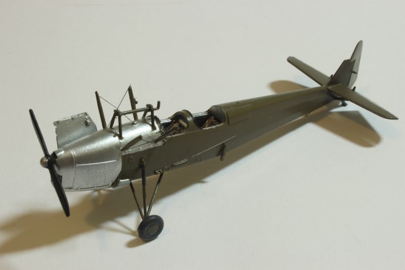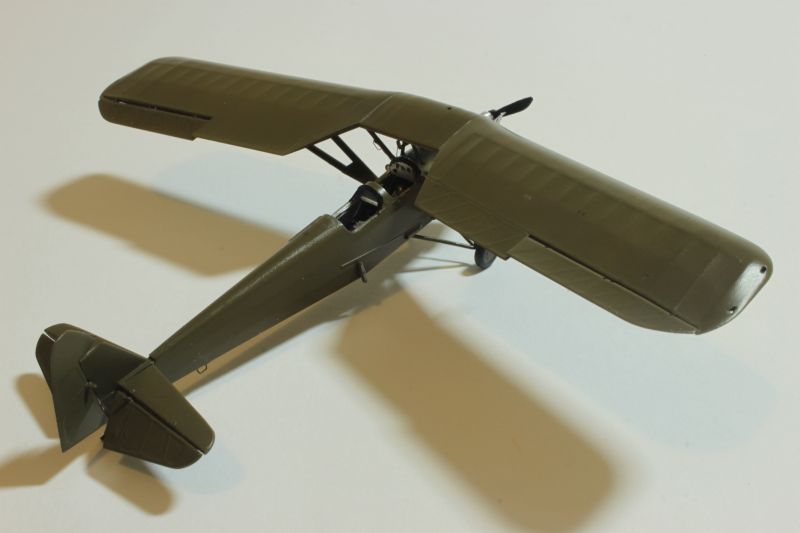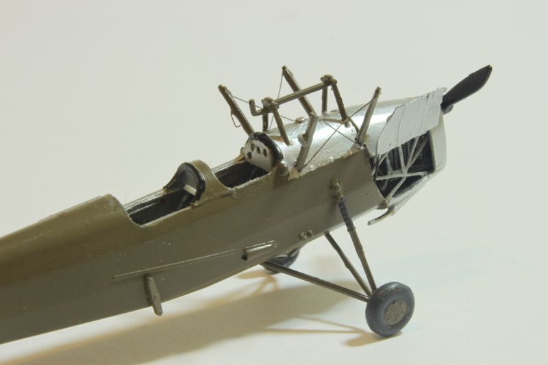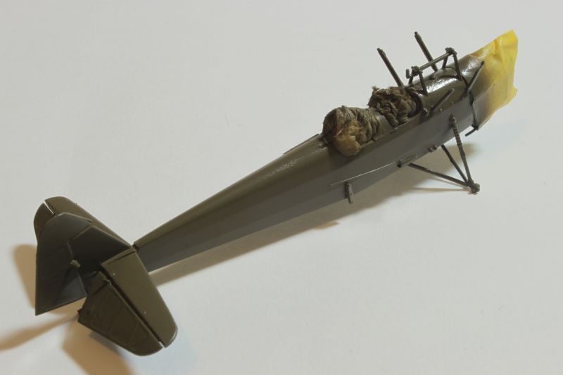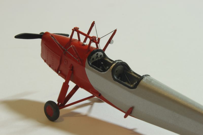 Mogłem złożyć teraz modele w całość, należało tu tylko uważać z montażem płata, żywiczny jest znacznie cięższy niż ten oryginalny co może być nieznacznym utrudnieniem. Złożone modele należało pokryć sidoluxem dla wyrównania powierzchni a następnie potraktować matowym werniksem, a moim przypadku był to produkt Vallejo. Z ciemnoszarej farby tego producenta sporządziłem wasch który zapuściłem cieniutkim pędzelkiem we wszystkie linie i zagłębienia obu replik. Ostatnie czynności jakie przyszło mi wykonać to naciągi i linki sterowe. Te krótsze to polistyrenowe włosy wyciągane nad ogniem, zaś dłuższe to nitki pozyskane z damskich rajstop. Na samym końcu wkleiłem oba wiatrochrony na swoich miejscach w kokpitach.