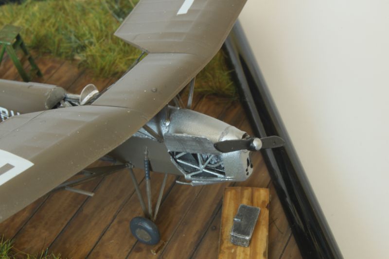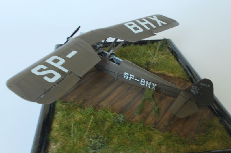 Samo sklejenie modelu i odstawienie na półkę przestało mi wystarczać, od pewnego czasu moje modele samolotu otrzymują podstawki w formie fragmentu lotniska, pola wzlotów itp., takiego naturalnego środowiska machin latających. Tak było i tym razem, oba „Erwudziaki” otrzymały podstawki, których układ podpatrzyłem na jakiejś przedwojennej fotografii, wodzidło, drabinkę i pozostałe drobiazgi wykonałem z modelarskiego złomu.