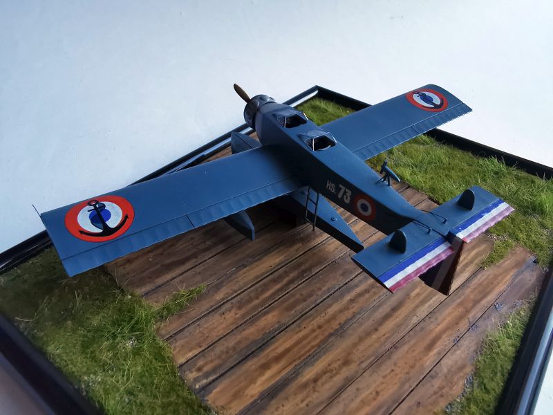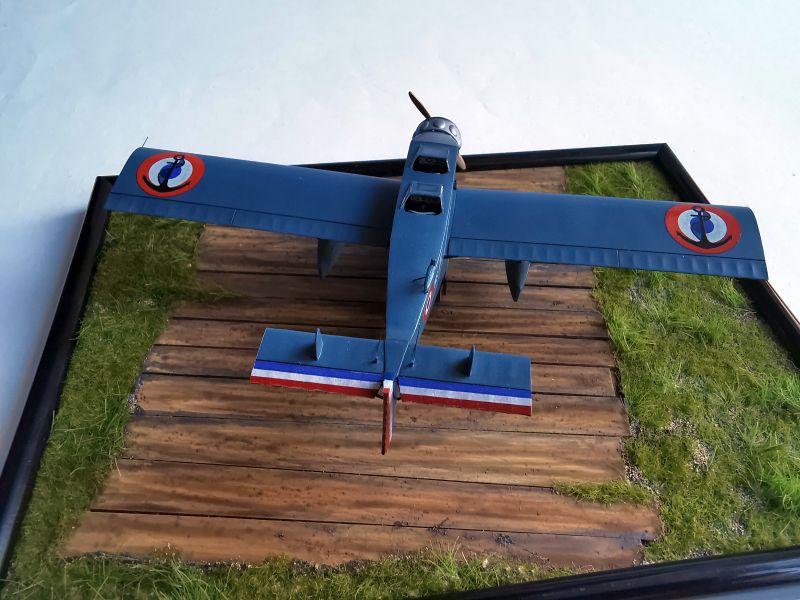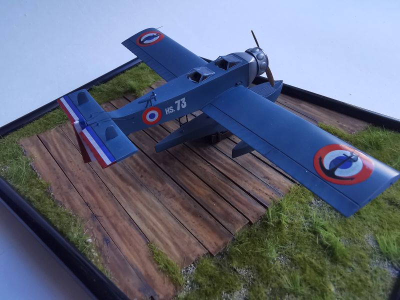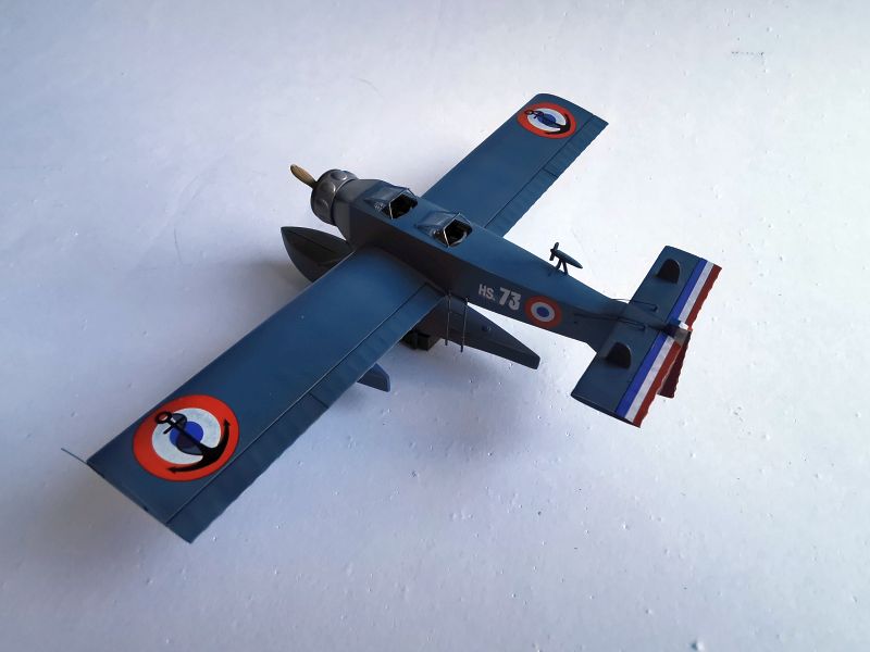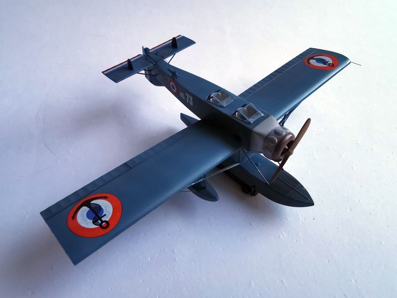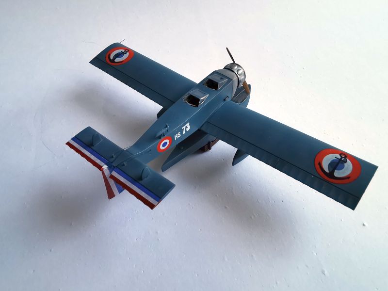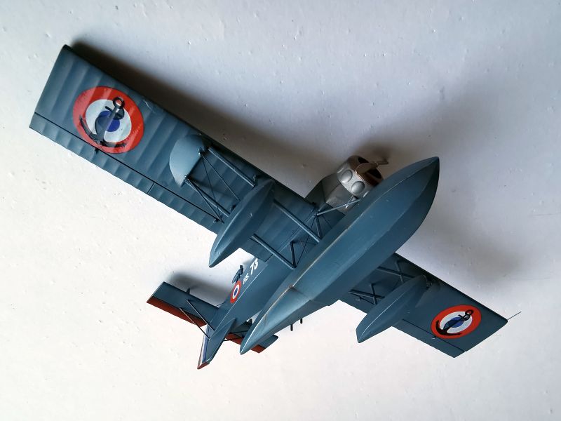 Ze względu na charakterystyczne oznaczenia francuskiej marynarki wojennej, szczególnie na usterzeniu, nałożenie kalkomanii wymagało uwagi i było pracochłonne. Kalkomanie wykorzystałem częściowo, kolor czerwony natrysnąłem aerografem. Reszta oznaczeń poszła jak z płatka.