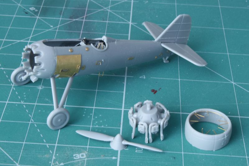Mogłem teraz zabrać się za sklejanie modelu w całość. Kiedy zorientowałem się, że jest tak idealnie spasowany, że można go złożyć niemal na wcisk, postanowiłem pomalować go w kilku segmentach, które dopiero później złożę w całość. W tym modelu praktycznie nie używamy szpachlówki. Ja musiałem jej użyć do zakrycia miejsc łączenia osłony silnika, ale to raczej modelarz zawinił przy wykonaniu a nie firma. Niewielką jamkę skurczową znalazłem na chwycie powietrza do gaźnika. Kropka kleju CA i obrobienie tego po wyschnięciu załatwiło sprawę.