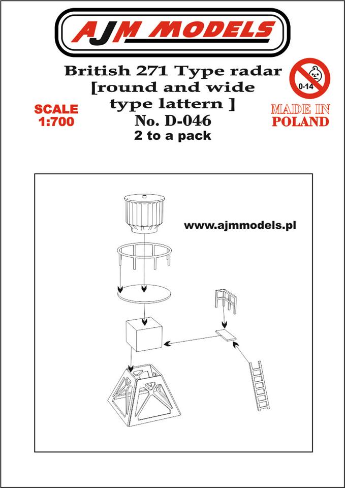 AJM Models: British 271 Type Radar 2pcs skala: 1:700 Nr kat: D-046 Typ: żywica |