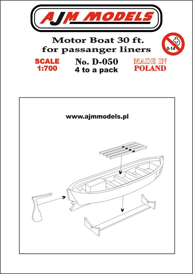 AJM Models: Motor boat 30ft. for passenger liners skala: 1:700 Nr kat: D-050 Typ: żywica |