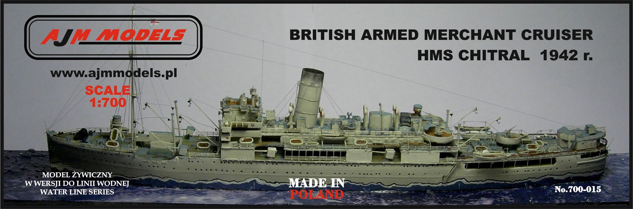 AJM Models: krążownik pomocniczy HMS Chitral skala: 1:700 Nr kat: 700-015 Opcje malowania: 1 Typ modelu: model żywiczny, elementy fototrawione. |