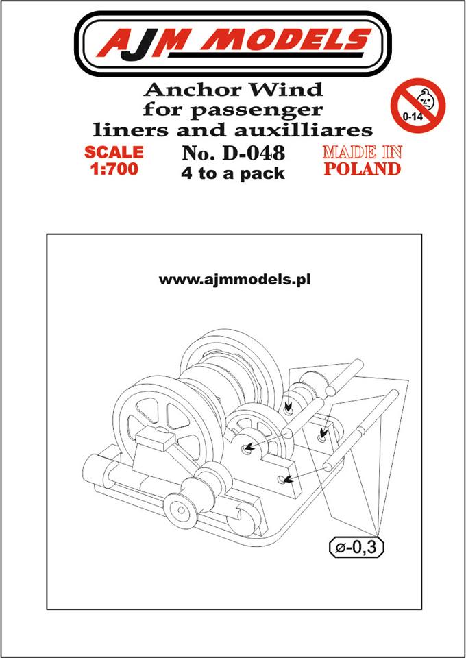 AJM Models: Anchor Wind for passenger liners and auxilliares 4xpcs skala: 1:700 Nr kat: D-048 Typ: żywica |