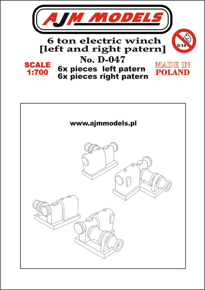 AJM Models: 6 ton electric winch 6x pieces left patern and 6x pieces right patern skala: 1:700 Nr kat: D-047 Typ: żywica |