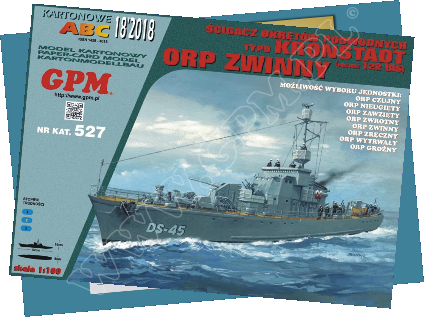 GPM: Ścigacz okrętów podwodnych ORP Zwinny Skala: 1:50 Nr kat: GPM-0527K Typ modelu: model kartonowy, elementy wycinane laserem |