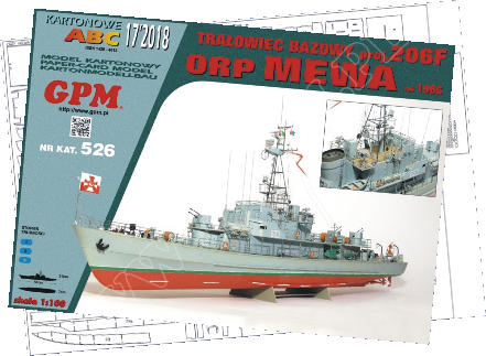 GPM: Trałowiec bazowy proj. 206F ORP Mewa Skala: 1:50 Nr kat: GPM-0526K Typ modelu: model kartonowy, elementy wycinane laserem |