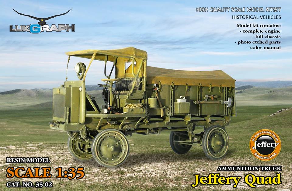 Lukgraph: Jeffery Quad ammunition truck skala: 1:35 Nr kat: 35-02 Opcje malowania: 2 Typ modelu: model żywiczny, elementy fototrawione, folia. |