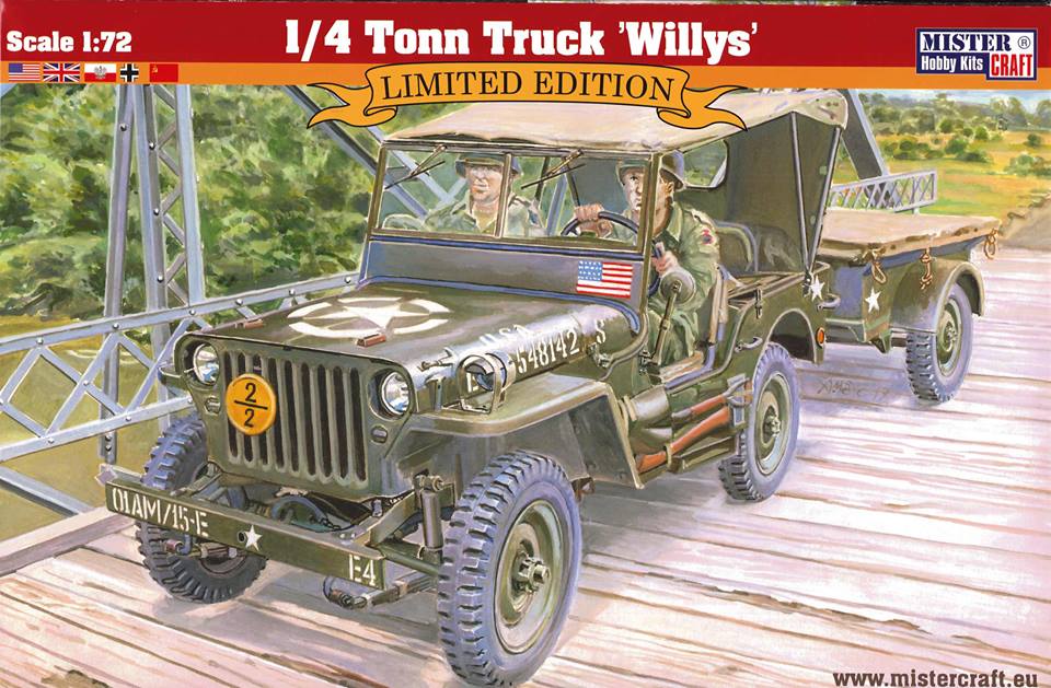 MisterCraft: 1/4 Ton Truck "Willys" Skala: 1:72 Nr kat: D299 Opcje malowania: 9 Typ modelu: model wtryskowy, ex. Heller |