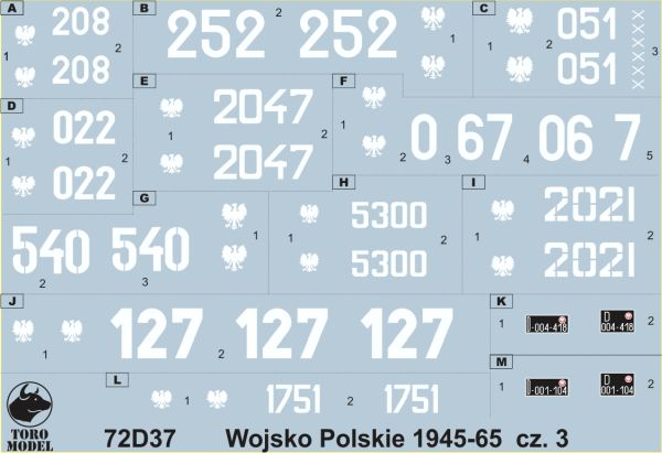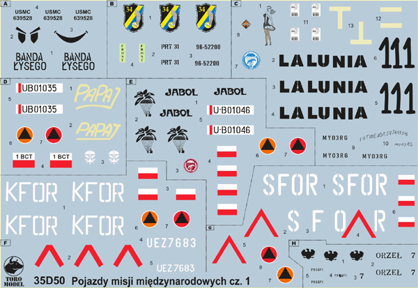 Toro model tym razem pokazał kilka kolejnych ciekawych zestawów kalkomanii w skalach 1/35 i 1/72. Mamy zatem zestawy oznaczeń na czołgi T-34 użytkowane w Wojsku Polskim, oraz na pojazdy Wojska Polskiego 1945 -1965, choć o tym okresie niektórzy strasznie chcą zapomnieć, modelarze jakoś nie. Ciekawą pozycją jest zestaw na oznaczeń na pojazdy używane w misjach międzynarodowych, po sygnaturze widać, że pojawią się kolejne części.