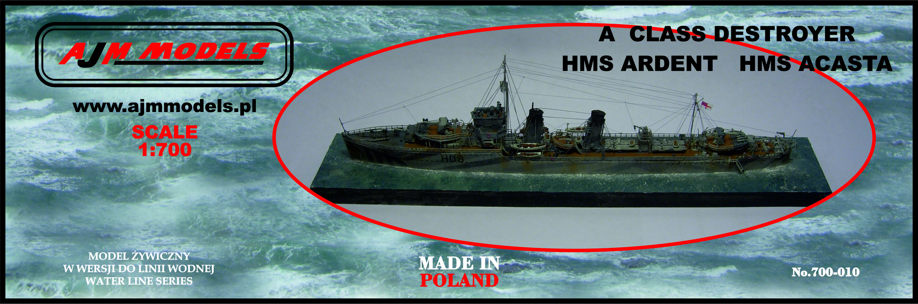 AJM Models: A Class Destroyer HMS Ardent / HMS Acasta Skala: 1:700 Nr kat: 700-010 Opcje malowania: 2 Typ modelu: model żywiczny + elementy fototrawione. |