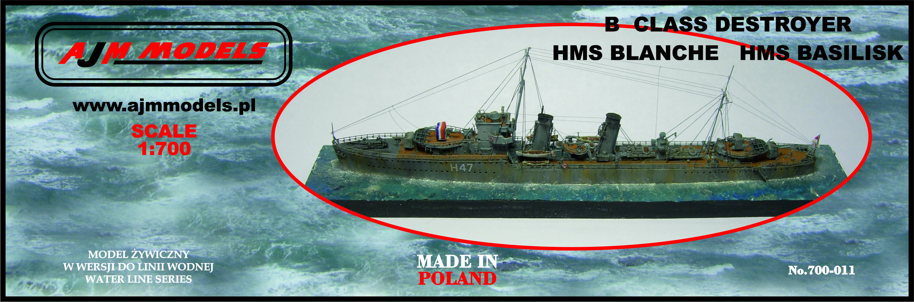 AJM Models: B Class Destroyer HMS Blanche / HMS Basilisk Skala: 1:700 Nr kat: 700-011 Opcje malowania: 2 Typ modelu: model żywiczny + elementy fototrawione. |