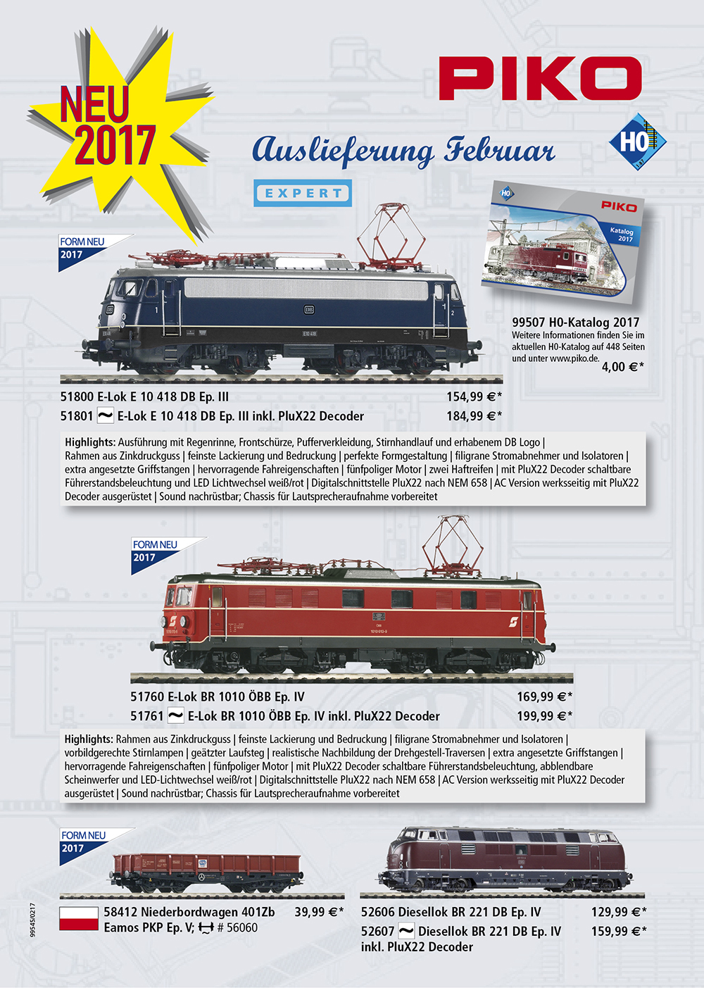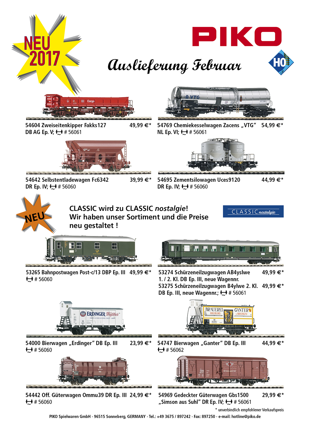 O wielbicielach modelarstwa kolejowego nie zapomniała natomiast firma PIKO. Początek roku to całkiem spora ilość nowości, jeśli chodzi o tabor kolejowy w najpopularniejszych skalach, czyli H0, TT i zdobywającej coraz większą popularność G. W sumie kilkanaście pozycji, które prezentujemy poniżej. Fani polskich kolei mogą powiększyć swe zbiory o modele wagonów pociągów pospiesznych I i II klasy w barwach Iner City (VI epoka) oraz dwuosiowego wagonu towarowego odkrytego w malowaniu EAMOS PKP (VI epoka)