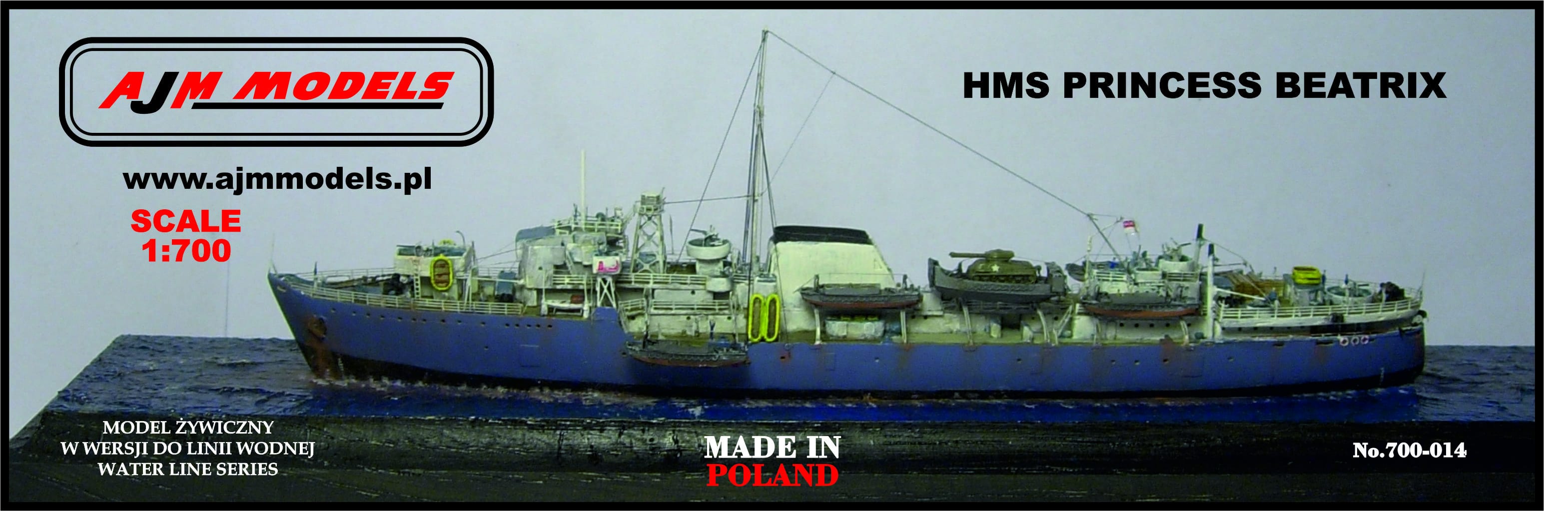 AJM MODELS: Okręt dowodzenia HMS Princess Beatrix skala: 1:700 Nr kat: 700 014 Opcje malowania: 1 Typ modelu: model żywiczny, elementy fototrawione. |