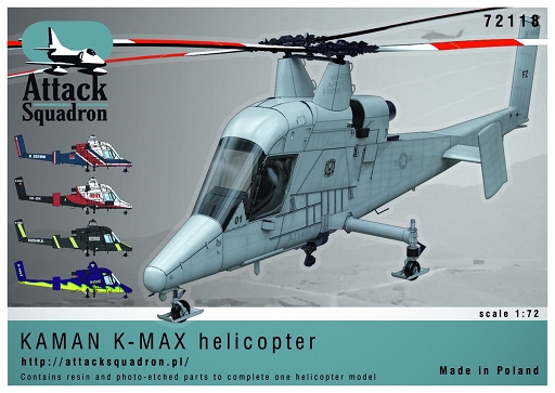 ATTACK SQUADRON: Śmigłowiec KAMAN K-Max EZ-Set skala: 1:72 Nr kat: ASQ72118 Opcje malowania: 5 Typ modelu: model żywiczny, elementy fototrawione, kabina vacu. |