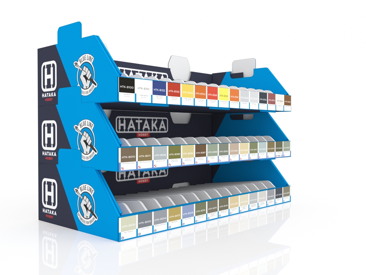 Niedługo chyba nie będzie na świecie modeli do których Hataka nie wypuściła zestawu farb. Oferta po raz kolejny została uzupełniona o nowe propozycje, zaś Hataka staje się wiodącym producentem farb nie tylko w Polsce, ale i w naszym regionie Europy. Wyroby te znalazły już uznanie modelarzy na całym świecie. Ciekawym rozwiązaniem adresowanym do sklepów modelarskich jest stojak na farby z serii Blue Line. Wygląda sympatycznie i zwraca uwagę. Przedstawiamy poniżej wygląd samego stojaka oraz jego paletę barw.