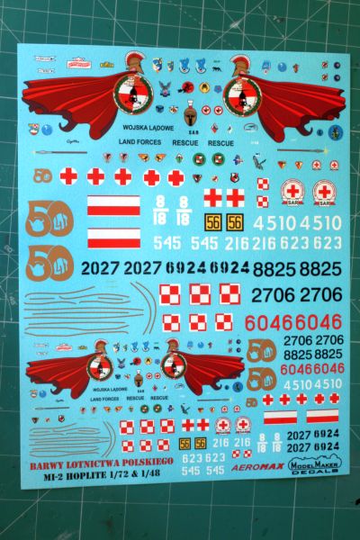 Bardzo mocnym punktem tej publikacji są kalkomanie. Firma ModelMaker opracowała na jej potrzeby aż trzy imponujące arkusze, które umożliwiają wykonanie repliki nie tylko każdej maszyny opisanej w publikacji, ale także praktycznie dowolnego egzemplarza Mi-2 latającego w polskich wojskach lądowych i siłach powietrznych. Wiem że są modelarze, którzy potrafią wykonać cała eskadrę P.7a czy P.11c, więc teraz taki eksperyment jest możliwy również z "Czajnikiem" i to w dwóch skalach - 1/72 i 1/48. Jeśli natomiast nie chcemy wykonywać całej eskadry Mi-2, jesteśmy dożywotnio wyposażeni w zapas numerów taktycznych które możemy wykorzystać w dowolny sposób. Pozycja na pewno warta uwagi i polecenia. Czekamy także na kolejne części poświęcone na przykład Marynarce Wojennej, Policji czy użytkownikom cywilnym.