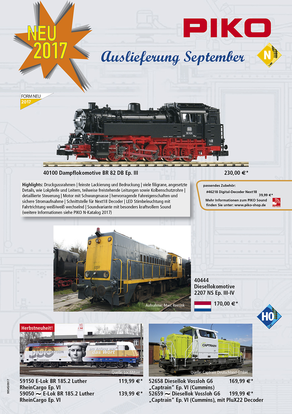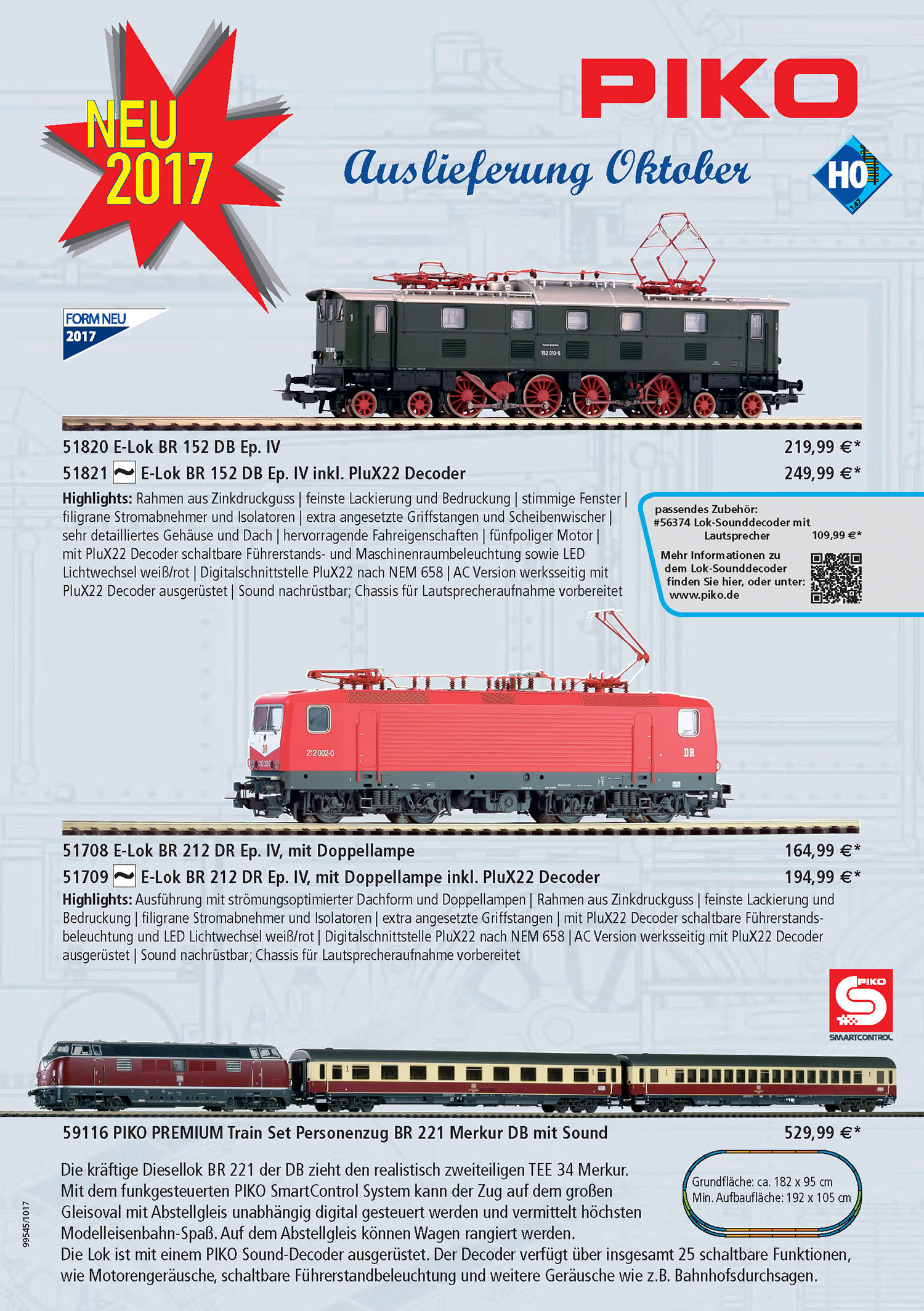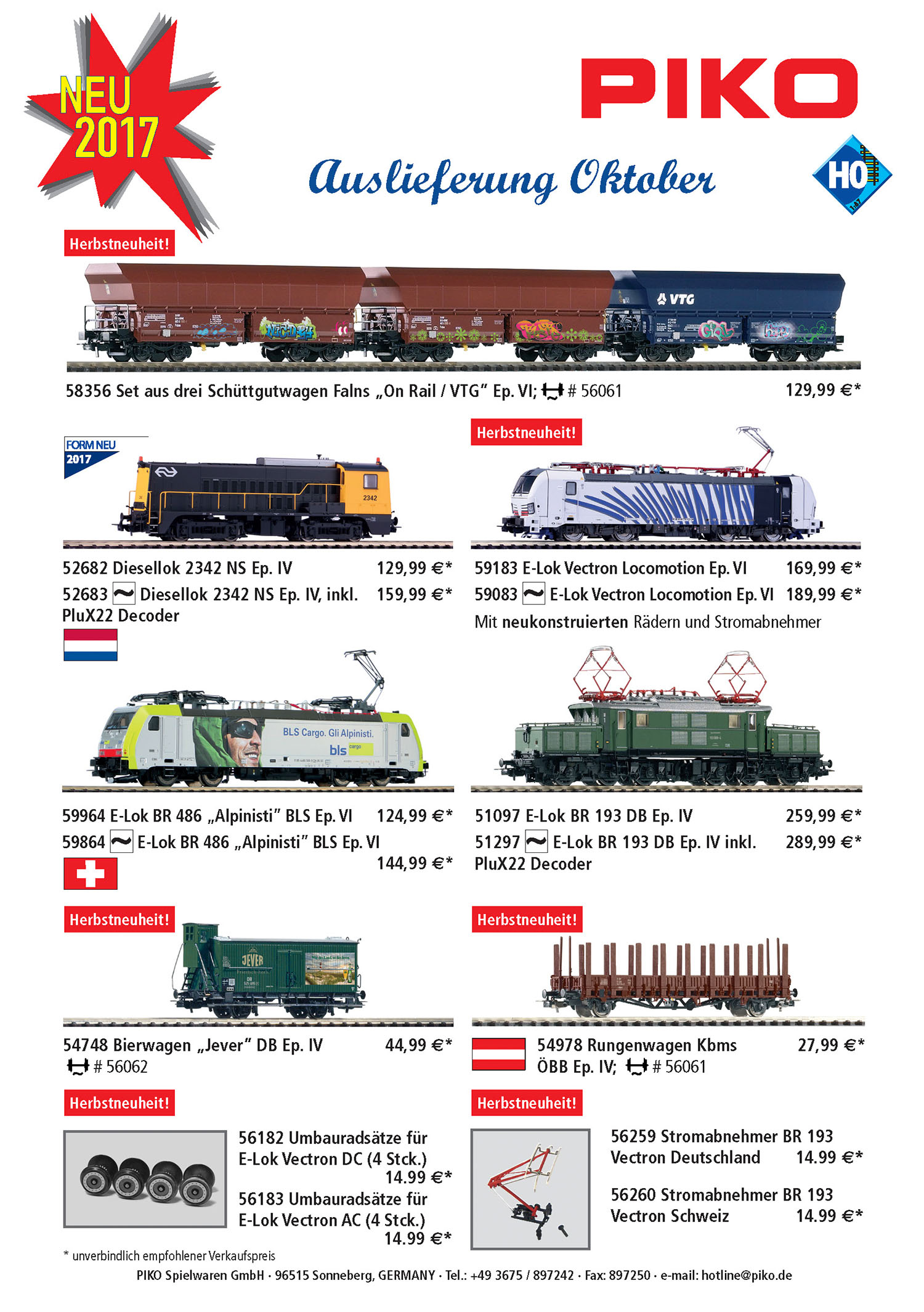 Także Piko przygotowało jesienią sporo nowości. O ile wrzesień był dość spokojny, o tyle w październiku pojawiło się sporo ciekawych propozycji jeśli chodzi o europejski tabor kolejowy, a wśród nich dwie nowości które zainteresują fanów polskich kolei. Są to wagon pasażerski 120A, czyli popularna „Bonaza” w malowaniu z V Epoki, oraz czteroosiowa lora 401 zb z VI Epoki. Ponadto firma rozszerza swoją ofertę w skalach G oraz N.