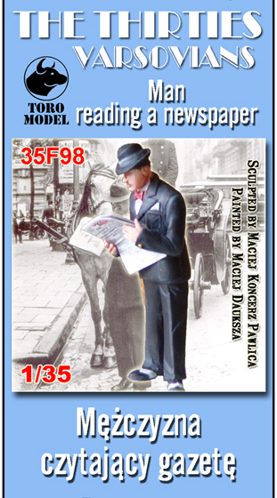 Toro Models: The Thirties - Man reading a newspaper Skala: 1:35 Nr kat: 35F98 Opcje malowania: 1 Typ modelu: figurka żywiczna. |