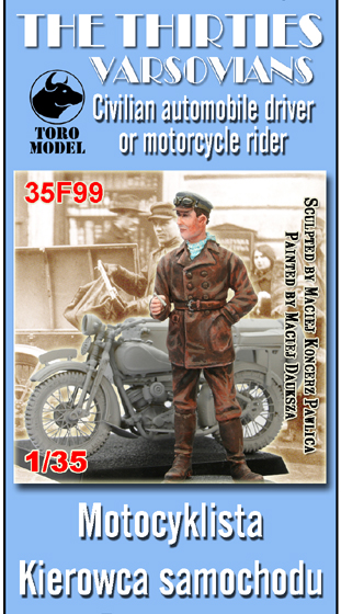 Toro Models: The Thirties - Civilian automobile driver or motorcycle rider Skala: 1:35 Nr kat: 35F99 Opcje malowania: 1 Typ modelu: figurka żywiczna. |
