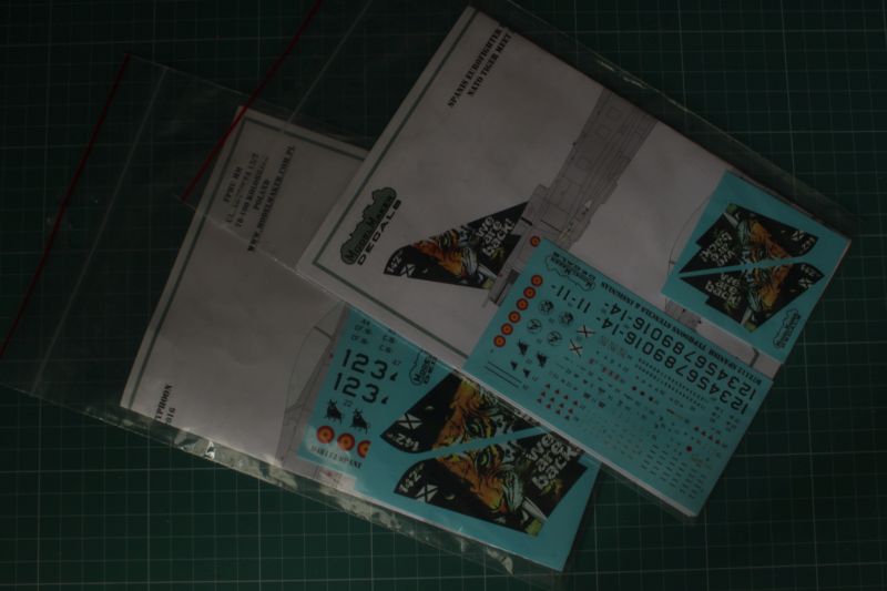 Zestaw kalkomanii na Hiszpańskie Typhoony zawiera oznaczenia do malowania okolicznościowego z okazji zlotu NATO Tiger Meet z 2016r. Producent nie podaje co prawda oznaczenia jednostki z której pochodził ozdobiony efektowną głową tygrysa samolot o numerze 14-06, ale nie jest to w dzisiejszych czasach trudne to specjalnie nie jest - 142 Dywizjon Myśliwski z bazy lotniczej w Albacete. Kalkomanie wydrukowano na dwóch arkusikach. Na jednym znajduje się komplet oznaczeń i stencili umożliwiający wykonanie większości hiszpańskich Typhoonów (numery oraz godła), na drugim znajdują się kalki na statecznik pionowy "tygrysiego" egzemplarza. Kołobrzeski producent po raz kolejny udowodnił, że malowania tygrysie to jego specjalność, zresztą nie tylko...