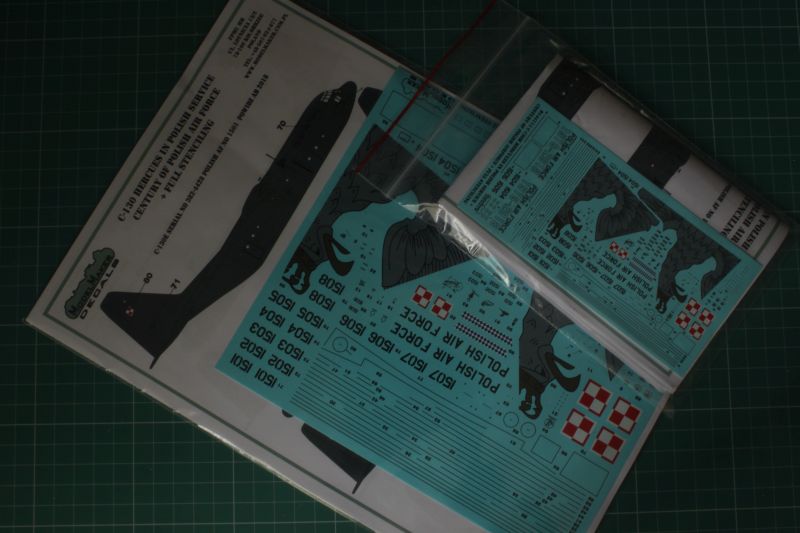 Czyli praktycznie wszystkie malowania Herculesów używanych w Polskim Lotnictwie Wojskowym. Swoistą wisienką na tym torcie są oznaczenia dla samolotu 382-4435, 1504 umożliwiające wykonanie go w bardzo atrakcyjnym malowaniu okolicznościowym z okazji 100-lecia Polskiego Lotnictwa Wojskowego. To niezwykle efektowne malowanie zaprojektowane przez mjr. Mariusza Gbura, aż do samej rocznicy było utrzymywane w tajemnicy, podobnie jak to, że ModelMaker Declas szykuje zestawy kalkomanii z tym malowaniem (KPM należał do niewielkiej grupy wtajemniczonych). Zrozumiałe zatem jest, że wzbudziło bardzo duże zainteresowanie miłośników lotnictwa i modelarzy. Poza numerami i oznaczaniami nowy zestaw kalkomanii na polskie Harculesy zawiera także bardzo szczegółowy, po liczący prawie 100 elementów zestaw stencili, co także podnosi jego wartość. Dzięki temu możemy wykonać bardzo wierne i efektowne repliki polskich Herculesów. Do  wysokiej jakości swoich wyrobów kołobrzeski producent zdążył nas przyzwyczaić, tak jest i tym razem.
