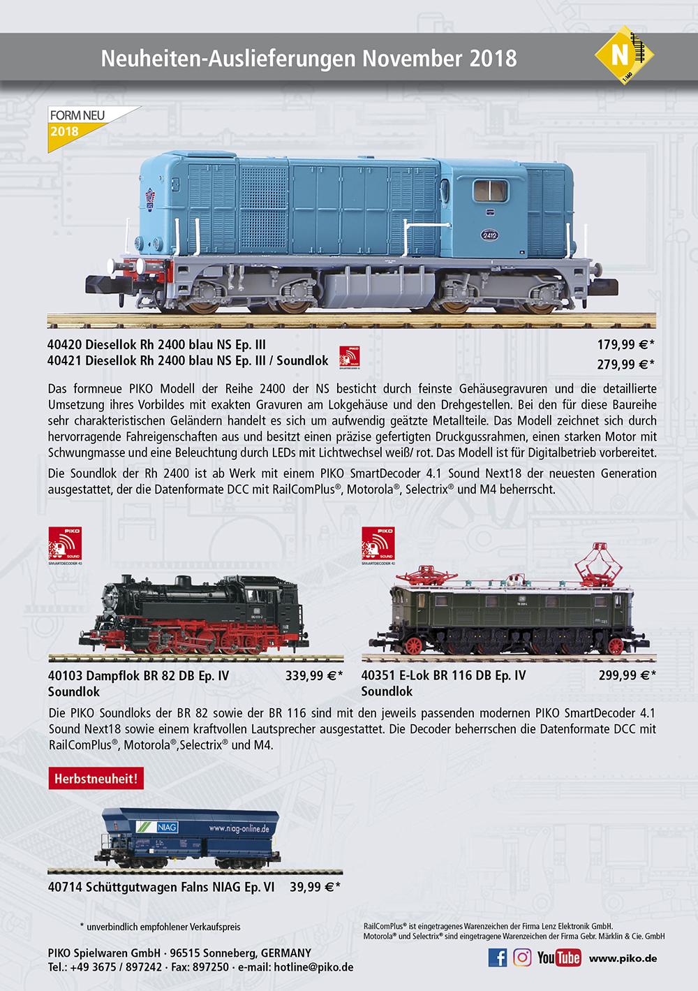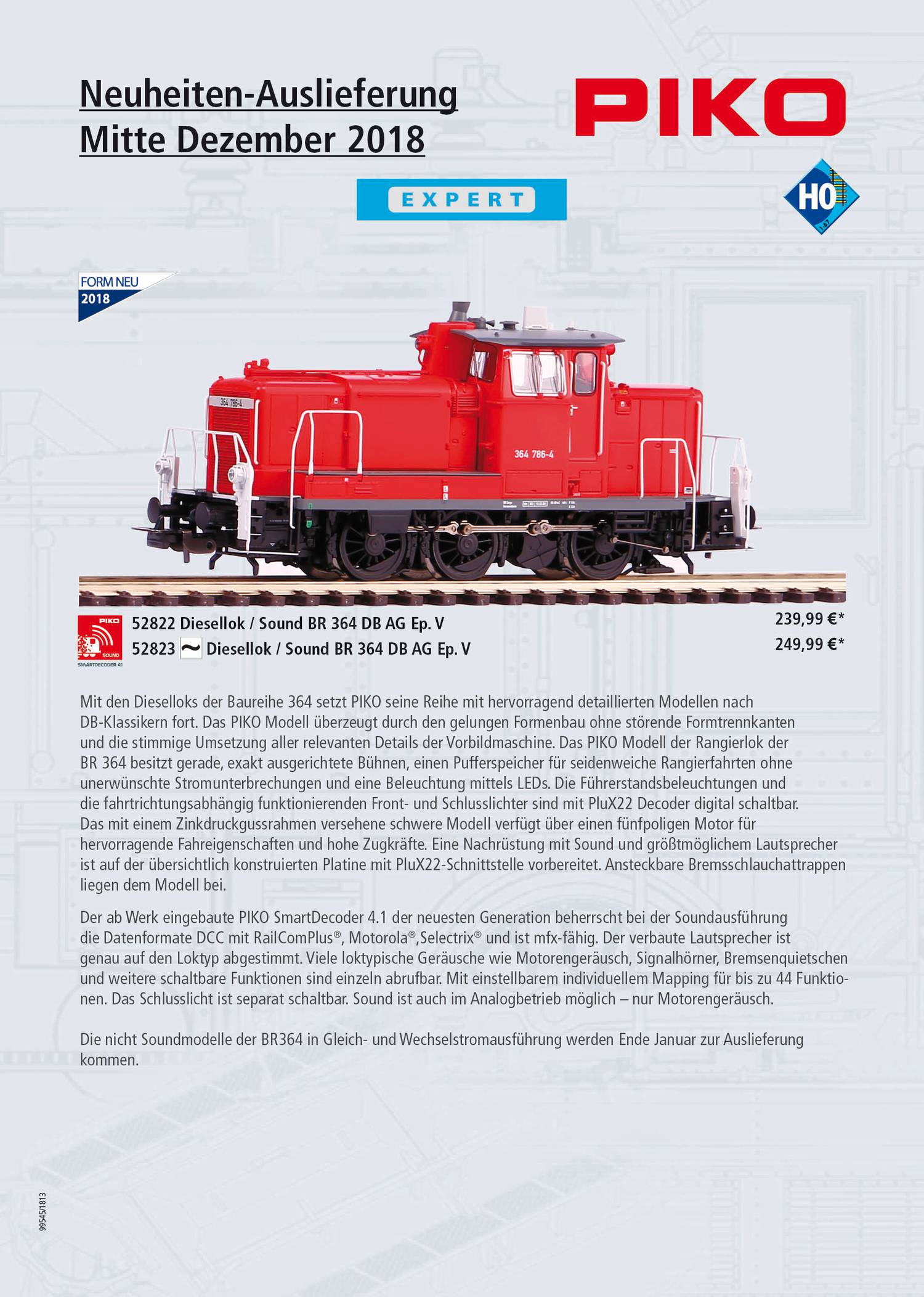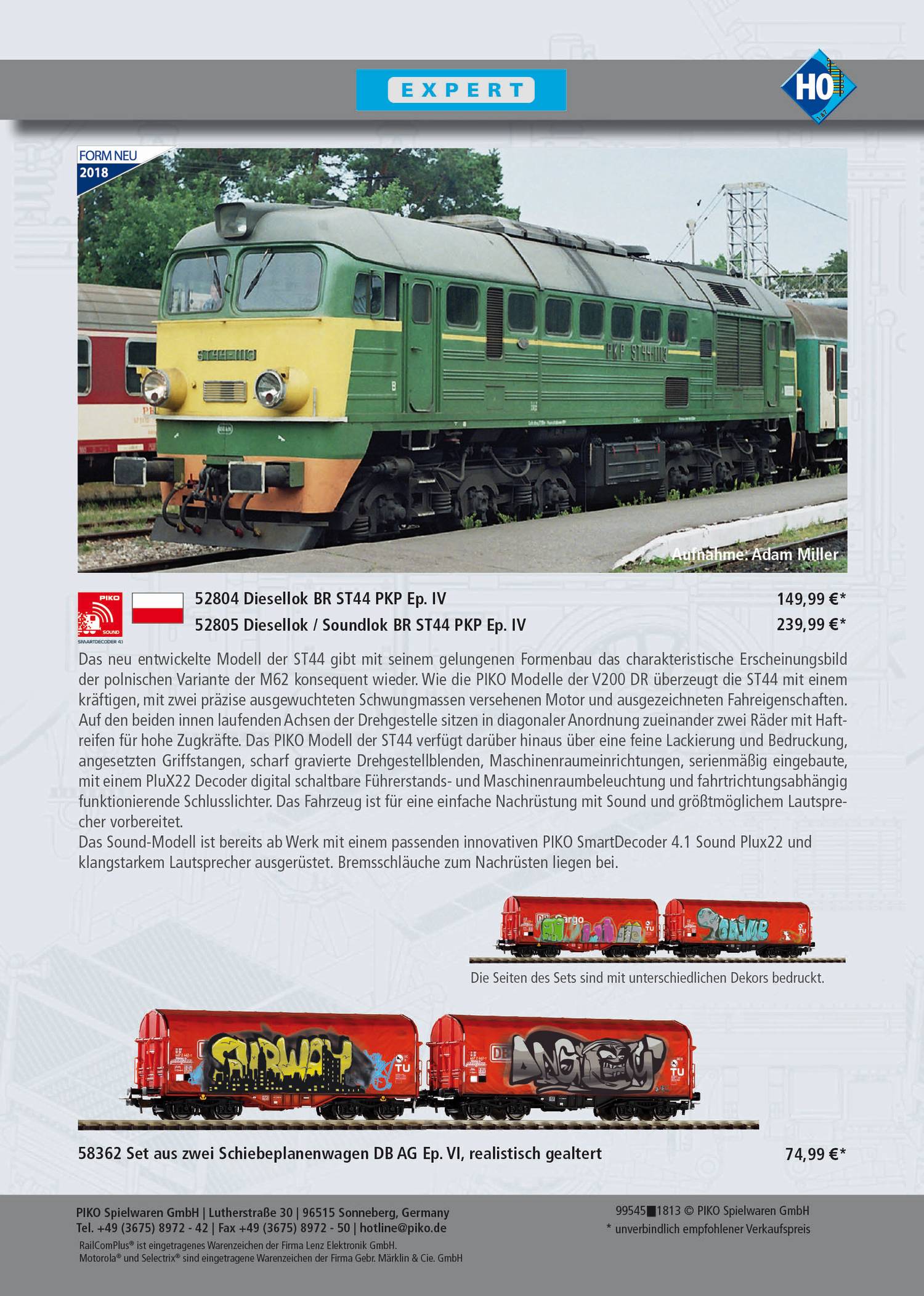 Końcówka roku zdecydowanie należy do Piko. Producent modeli kolejowych przygotował w listopadzie i grudniu całkiem sporą ilość nowości we wszytskich możliwych skalach, epokach i standardach, zaróno Expert jak i Hobby. Mamy nowości jeśli chodzi o tabor kolejowy praktycznie z całej Europy, a polskich "kolejarzy" ucieszy pewnie fakt, iż spora ilość nowych modeli przedstawia tabor kursujący po polskich szynach. Mamy zatem kolejne odsłony tak kultowych pojazdów jak lokomotywy ST-44, SP-45 czy SM-42. W segemcie Expert, w którym ukazały się te modele mamy ponadto cztery modele wagonów psażerskich oraz wagon cysternę, zaś w segmencie Hobby dwuosiowy wagon towarowy odkryty.