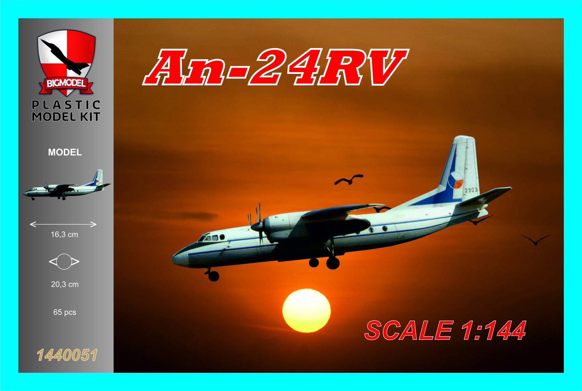 BIGMODEL: An-24 RV Czech Air Force skala: 1:144 Nr kat: 1440051 Opcje malowania: 1 Typ modelu: model wtryskowy. |