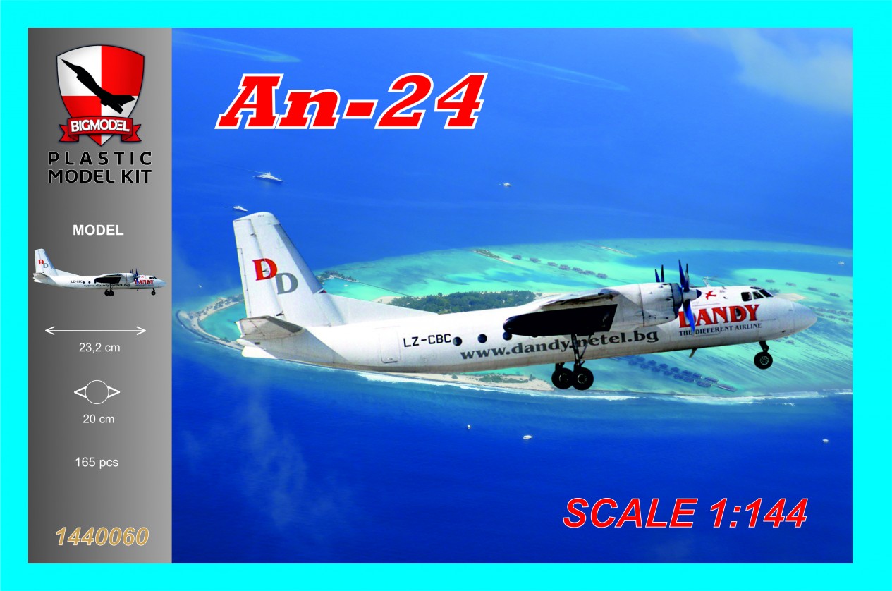 BIGMODEL: An-24 DANDY skala: 1:144 Nr kat: 1440060 Opcje malowania: 1 Typ modelu: model wtryskowy. |