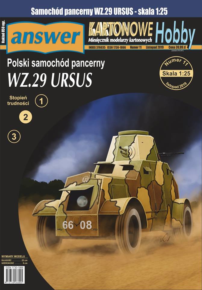 ANSWER: WZ.29 Ursus Skala: 1:25 Nr kat: Nr11 Typ modelu: model kartonowy |