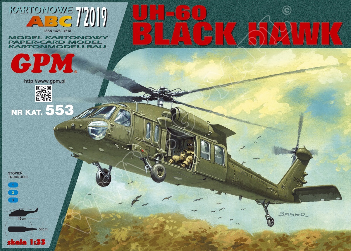 GPM: UH-60 Black Hawk Skala: 1:33 Nr kat: GPM-0533 K Typ modelu: model kartonowy, elementy wycinane laserem GPM: UH-60 Black Hawk Skala: 1:33 Nr kat: GPM-0533 Typ modelu: model kartonowy |