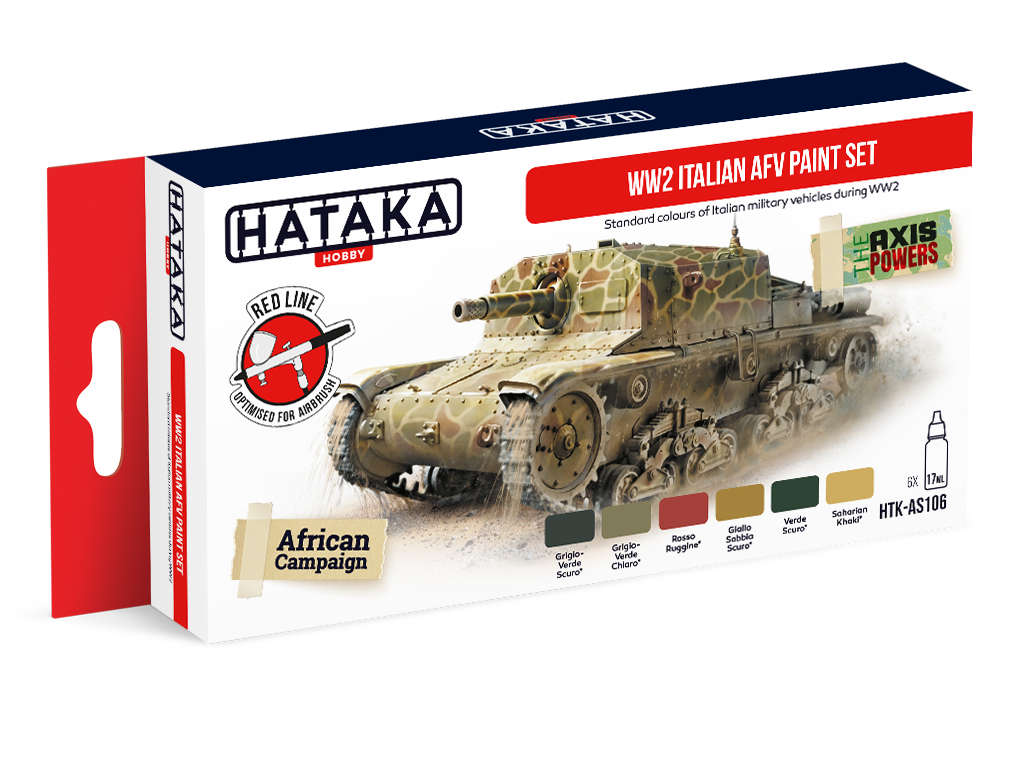 HATAKA: WW2 Italian AFV paint set Nr kat: HTK-AS106 Typ: farby akrylowe |