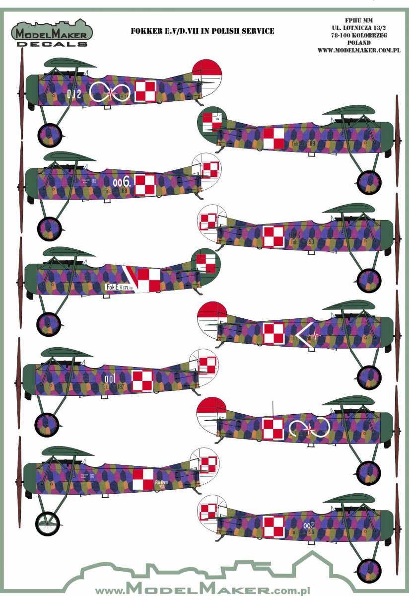 ModelMaker Decals: Fokker E.V/D.VII in Polish service skala: 1:48 Nr kat: D48114 Typ: kalkomanie |