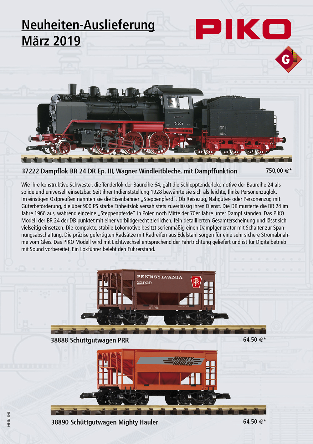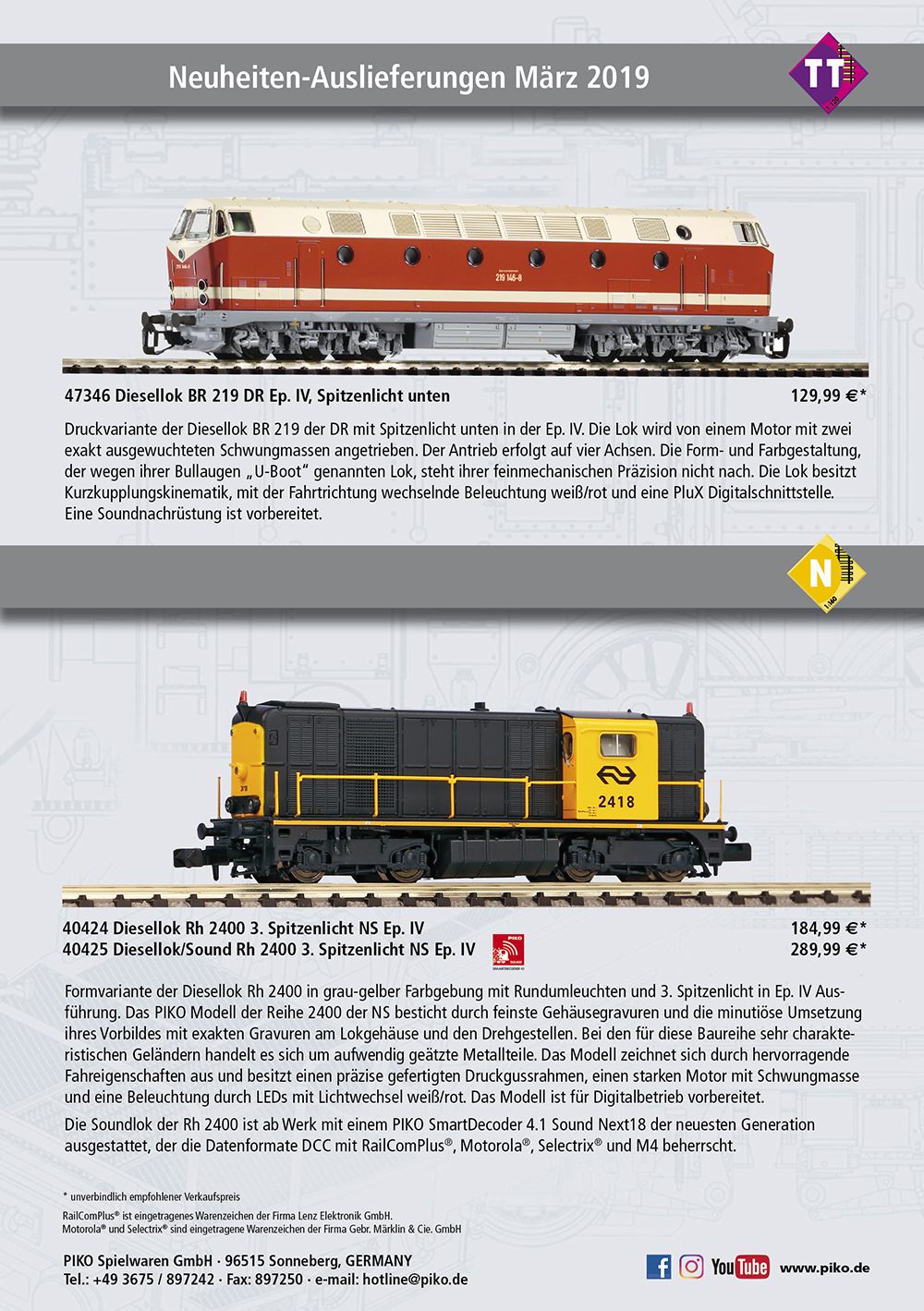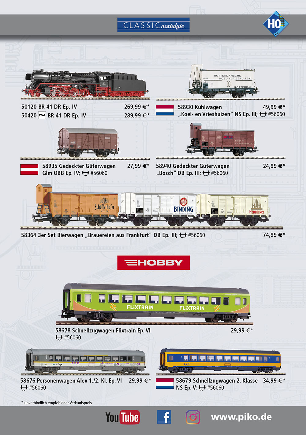 Sporo nowości przegotowała także firma PIKO, w sumie kilkanaście pozycji we wszystkich trzech skalach. W segmencie "Expret" pojawiły się dwa swego czasu zapowiadane i oczekiwane modele polskich lokomotyw SP-45 i Eu-06, które uzupełnia wagon czteroosiowego wagonu węglarki. Jest także sporo ciekawych propozycji taboru kolejowego innych przewoźników europejskich.