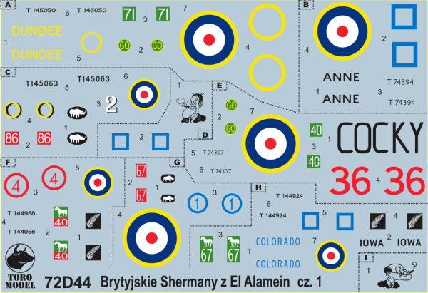 Toro Models: Brytyjskie Schermany z El Alamein cz.1 skala: 1:72 Nr kat: 72D44 Typ: kalkomanie |