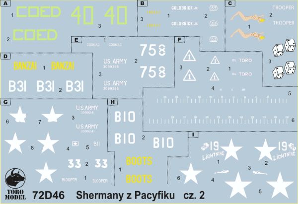 Nowe zestawy kalkomanii od Toro Model to kolejne zestawy na czołgi Scherman, we wszystkich trzech podstawowych modelarskich skalach. Każdy z nich zawiera co najmniej pięć malowań, a wszystkie bardzo atrakcyjne.