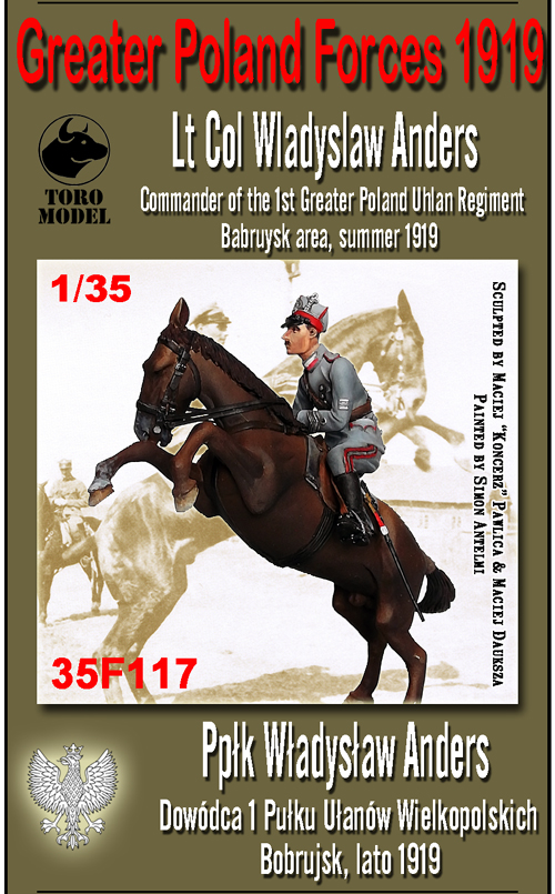Generał Władysław Anders jest kojarzony z wyjściem Armi Polskiej z ZSRR a później z II Korpusem Polskim we Włoszech. Toto Model postanowiło cofnąć się do Bobrujska , do 1919r. i pokazał W. Andersa w randze podpułkownika i dowódcy 1 Pułku Ułanów Wielkopolskich. Przepiękna, dynamiczna figurka konna.