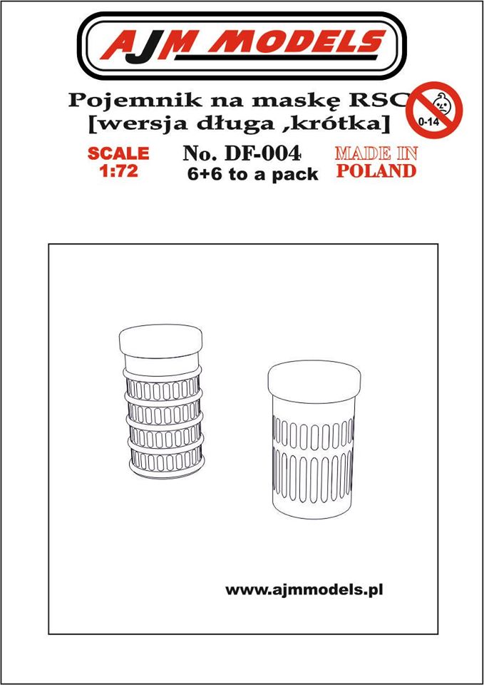 AJM Models: Pojemnik na maskę RSC [wr. długa i krótka] Skala: 1:72 Nr kat: DF-004 Typ: żywica |