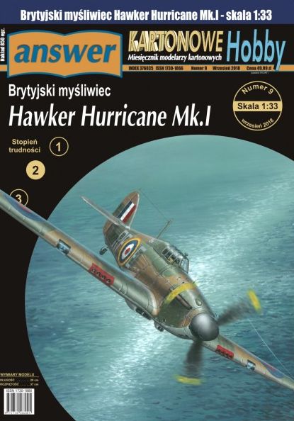 Answer Kartonowe Hobby: Hawker Hurricane Mk.I Skala: 1:33 Nr kat: No. 9 Typ modelu: model kartonowy |