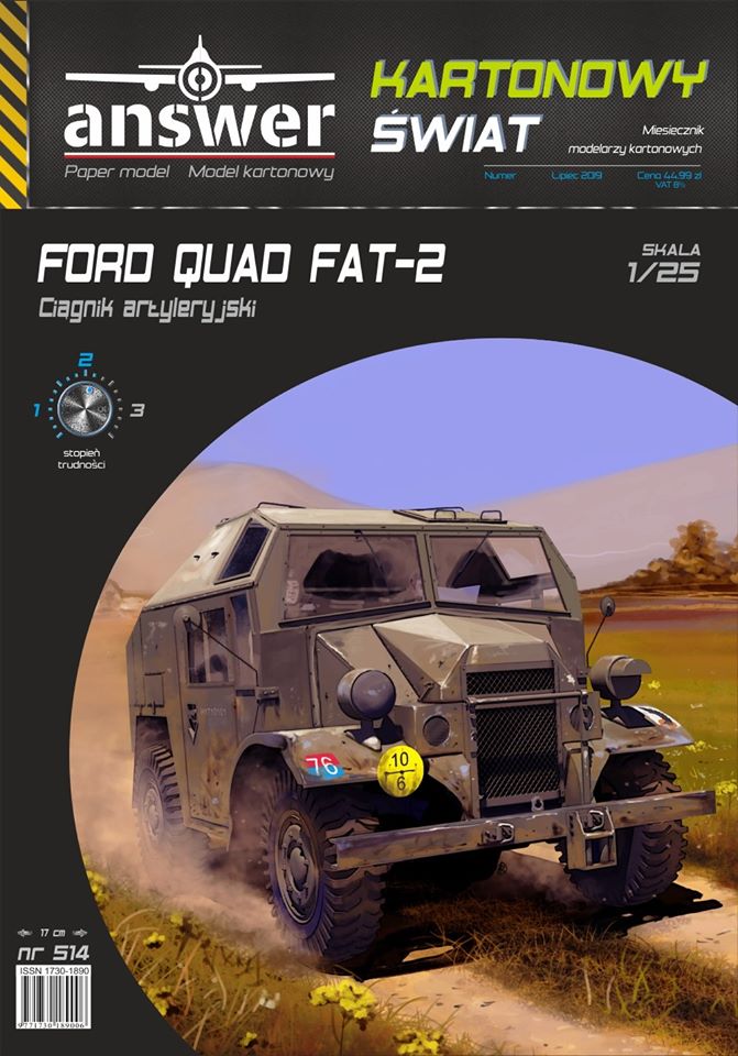 Answer Kartonowy Świat: FORD QUAD FAT-2 Skala: 1:25 Nr kat: No. 514 Typ modelu: model kartonowy |