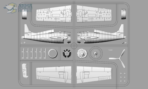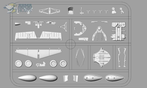 Zestaw składa się z tych samych wyprasek, co wcześniejsza wersja z działkiem plot, z tym, że tu oczywiscie wyprasek z elementami działka nie uświadczymy. Identyczna jest także blaszka fotorawiona, uzupełnijaca elementy wtryskowe.