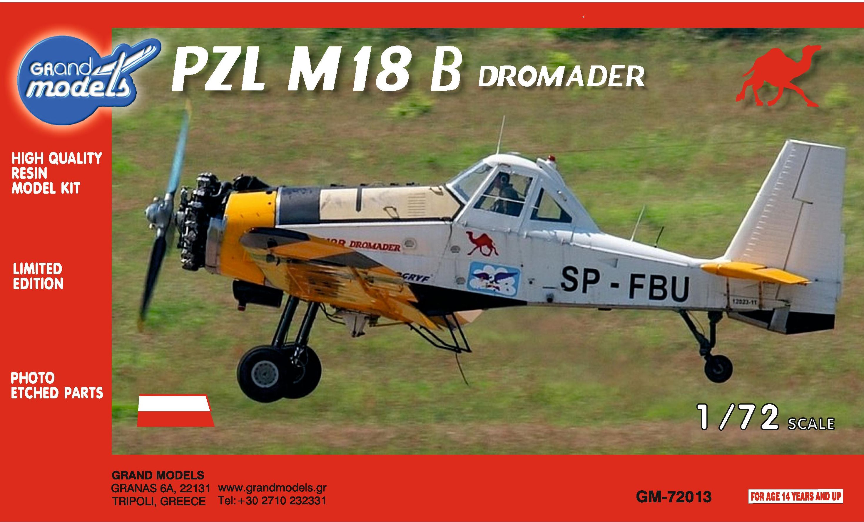 Great Models: PZL M-18B Dromader Skala: 1:72 Nr kat: GM-72013 Opcje malowania: 3 Typ modelu: model 3D, elementy żywiczne, fototrawione i metalowe |