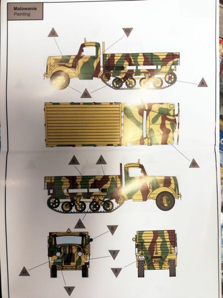 Mamy do wyboru dwa, oba przedstawiają malowania pojazdów użytkowanych przez wojsko niemieckie we Włoszech w 1944r. Niestety nie znajdziemy informacji w jakich jednostkach służyły oba pojazdy. Szkoda, bo malowania naprawdę efektowne - wehrmacht olive no i fantazyjne ornamenty w kolorach zielonym i brązowym. Słowem niemiecka klasyka, która zawsze wyglada dobrze na modelach. Więcej na temat wcześniejszych wersji tego modelu można przeczytać tu i tu.