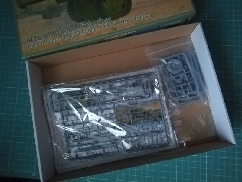 Kolejną propozycją warszawskiego producenta jestamerykńskie wcielenie M1897 75mm, czyli popularnego Schneidera. Zestaw skałda się dokładnie z tego samego kompletu ramek co poprzednie, identyczna jest także dołączona do zstawu fototrawione blaszka. Ponieważ egzelmparze tej armaty użytkowane w armii amerykońskiej nie miały żadnych oznaczeń...