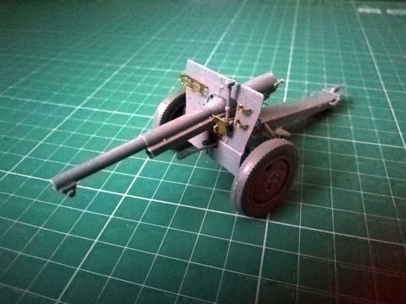 ... znalazło to odzwierciedlenie w schemacie malowania. Armata jest malowana cłkowicie oliwkowo - zielonym kolorem, zaś producent nie dołożył do zestawu żadnej kalkomanii. Model jest jednak kompletnie bezstresowy w montażu, a złożyć go w całość można praktycznie w ciagu jednego wieczora, o czym świadczą poniższe zdjęcia: