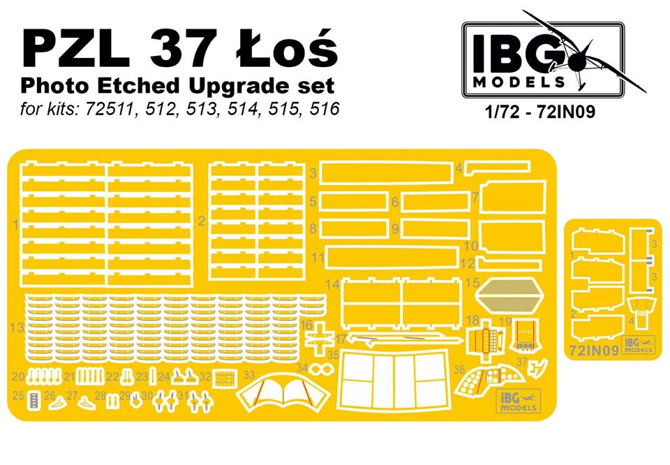 IBG Models: PZL 37 Łoś Photo Etchet Upgrade set Skala: 1:72 Nr kat: 72IN09 Typ: Elementy fototrawione |